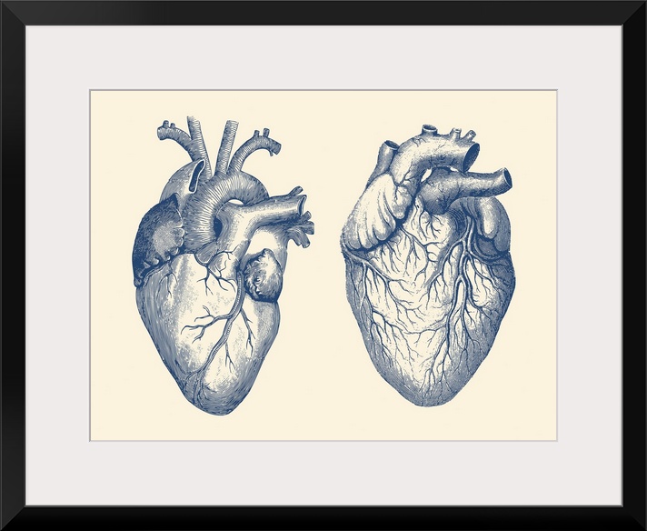 <p>Vintage anatomy print features a dual view of the human heart.</p>