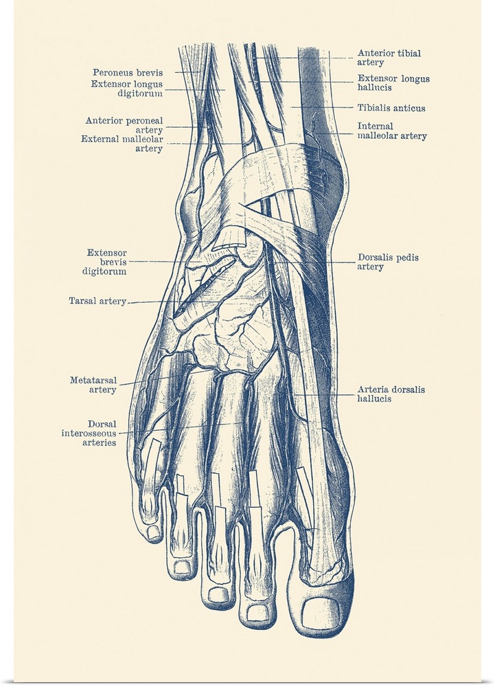 <p>Vintage anatomy print of the human foot, showcasing the veins and arteries.</p>