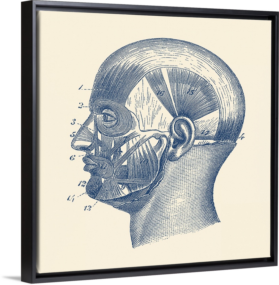 <p>Vintage anatomy print showcasing the muscles around the face and head.</p>