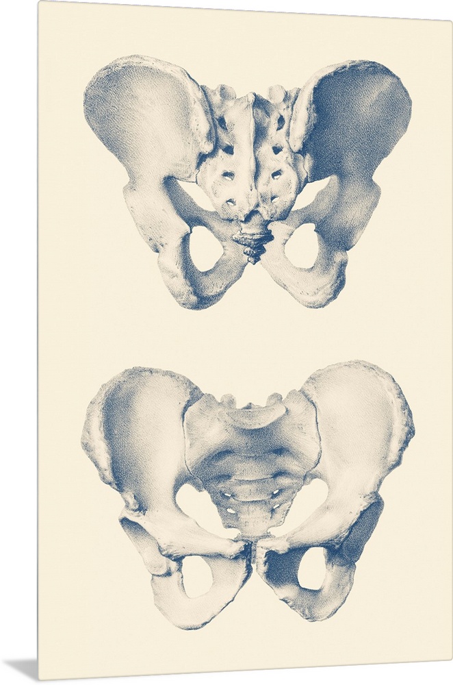 <p>Vintage anatomy print showing a dual view of the human pelvis.</p>