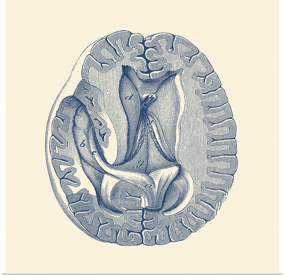 <p>Vintage anatomy print showing a simplified view of the human brain from above.</p>