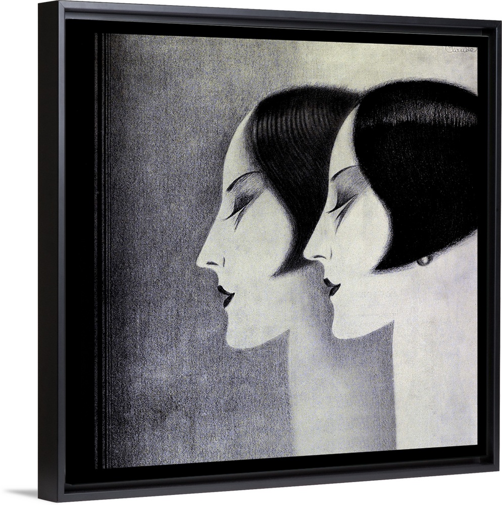 <p>Vintage artwork in the style of art deco of two women with bobbed hairstyles.</p>