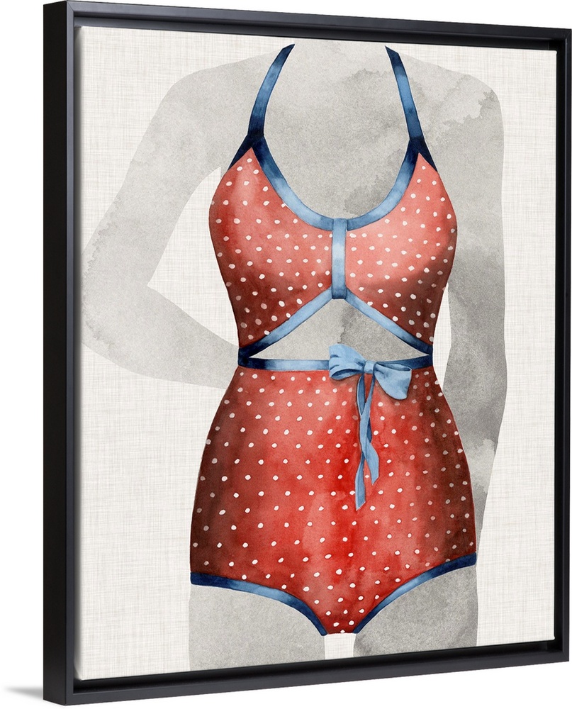 <p>Watercolor painting of a vintage polka dotted bikini.</p>