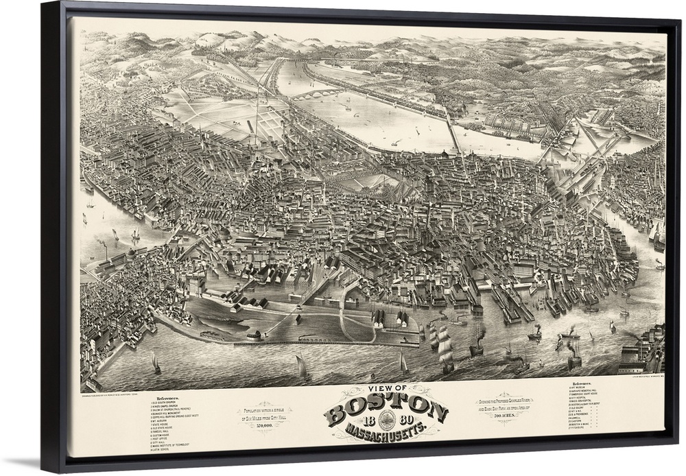 Art Commercial Decor Drawing Maps Antique Maps Maps by City H. H. Rowley Massachusetts Boston