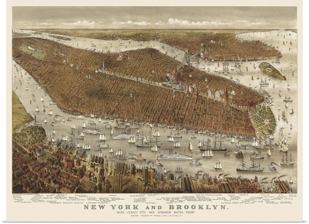 Art Commercial Decor Law Office Decor Drawing Currier and Ives Maps Antique Maps Maps by City Photography New York New York City Brooklyn