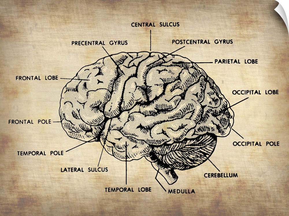 <p>Vintage Brain Map Anatomy, vintage art, vintage prints, old prints, old drawings</p>