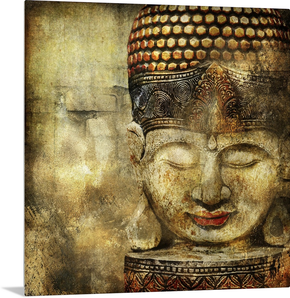 <p>Vintage image with Buddha head.</p>