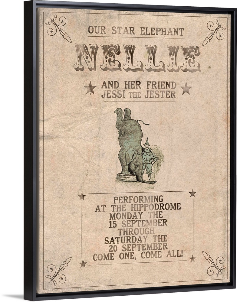 <p>Vintage-style circus poster advertising Nelly, the Star elephant.</p>