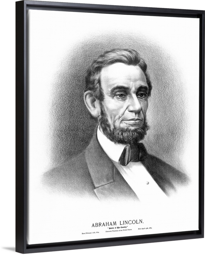 <p>Vintage Civil War era print of the bust of President Abraham Lincoln. It reads, Abraham Lincoln, Savior Of His Country, Born February 12th, 1809, Sixteenth President of the United States, Died April 15th, 1865.</p>