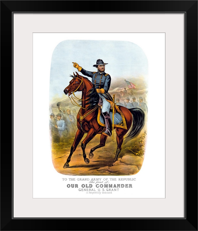 <p>Vintage Civil War poster of General Ulysses S. Grant, on horseback, leading Union troops into battle. It reads, To The Grand Army Of The Republic, This print of Our Old Commander, General U.S. Grant, is respectfully dedicated.</p>