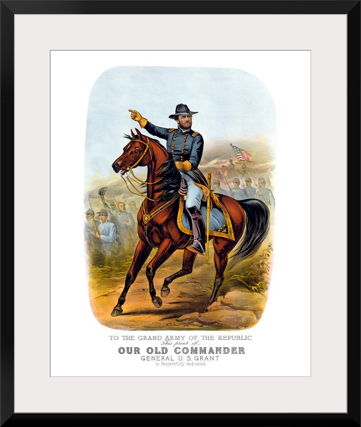 <p>Vintage Civil War poster of General Ulysses S. Grant, on horseback, leading Union troops into battle. It reads, To The Grand Army Of The Republic, This print of Our Old Commander, General U.S. Grant, is respectfully dedicated.</p>