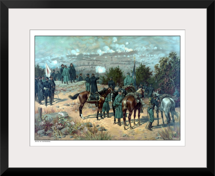 <p>Vintage Civil War poster of the Battle of Missionary Ridge which took place during the Chattanooga Campaign. The print shows General U.S. Grant, General George Thomas, and General Gordon Granger observing the union assault on Missionary Ridge.</p>