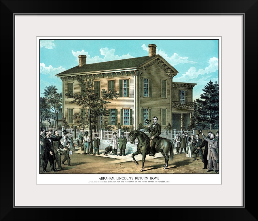 <p>Vintage Civil War print of Abraham Lincoln riding on horseback as a crowd cheers. It reads, Abraham Lincoln's Return Home, After His Successful Campaign For The Presidency Of The United States, In October, 1860.</p>