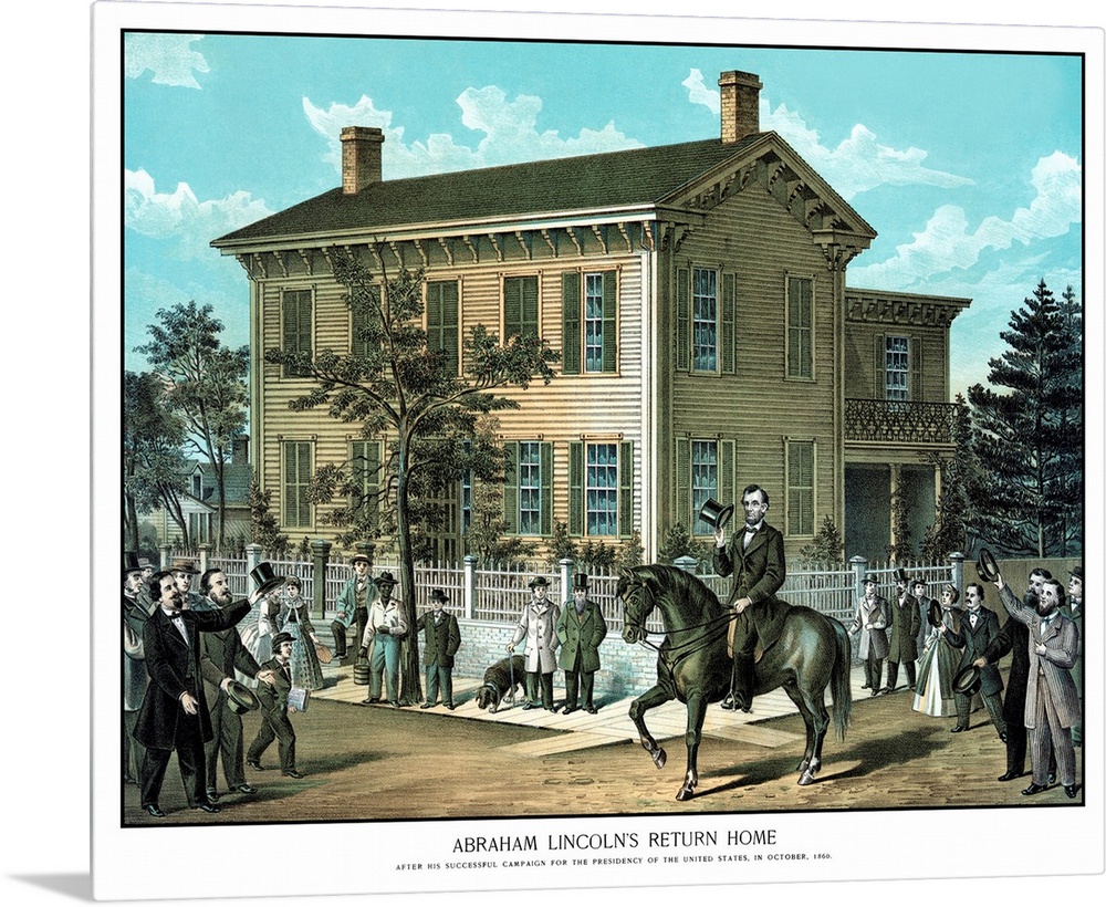 <p>Vintage Civil War print of Abraham Lincoln riding on horseback as a crowd cheers. It reads, Abraham Lincoln's Return Home, After His Successful Campaign For The Presidency Of The United States, In October, 1860.</p>