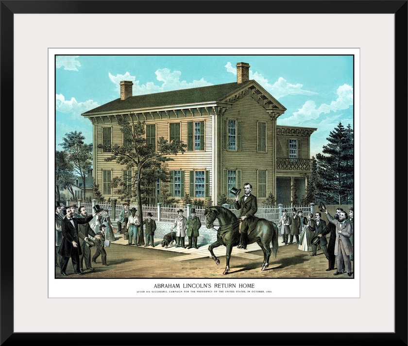 <p>Vintage Civil War print of Abraham Lincoln riding on horseback as a crowd cheers. It reads, Abraham Lincoln's Return Home, After His Successful Campaign For The Presidency Of The United States, In October, 1860.</p>