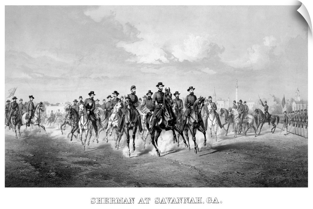 <p>Vintage Civil War print of General William Tecumseh Sherman and his Generals, on horseback, at Savannah Georgia.</p>
