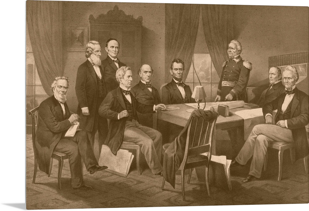 <p>Vintage Civil War print of President Abraham Lincoln and his cabinet.</p>