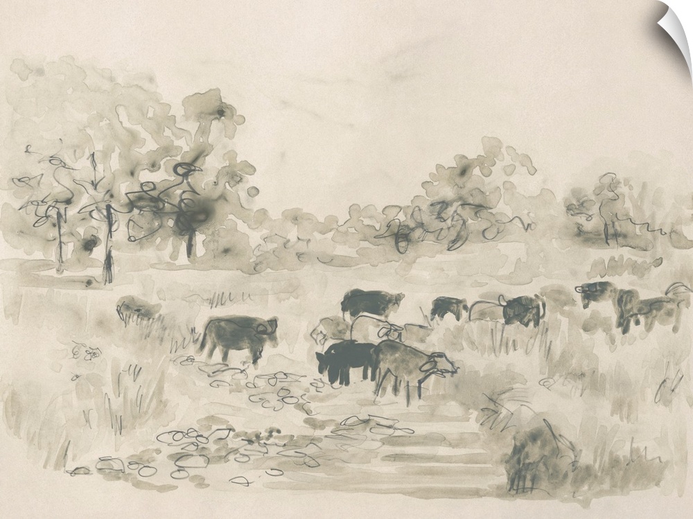 Art Farmhouse Decorative Art Grey Wall Art Landscapes Countryside Painting June Erica Vess Watercolor Wildlife Cow