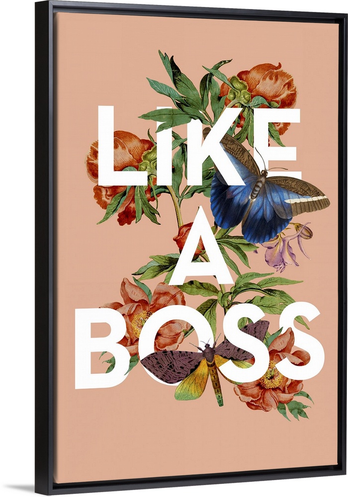 <p>A collage of vintage flowers and insects intertwined with the words Like a Boss on a peach background.</p>