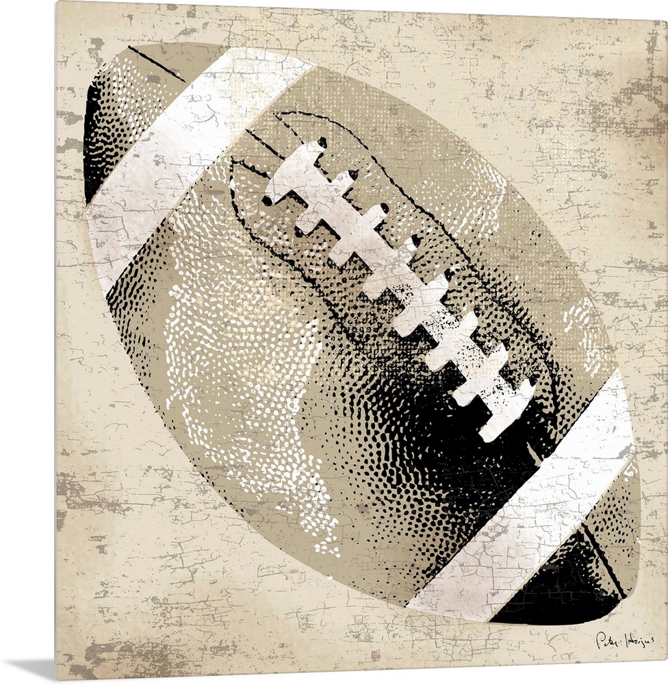 <p>Vintage style wall art of an old distressed football on tan and sepia background.</p>
