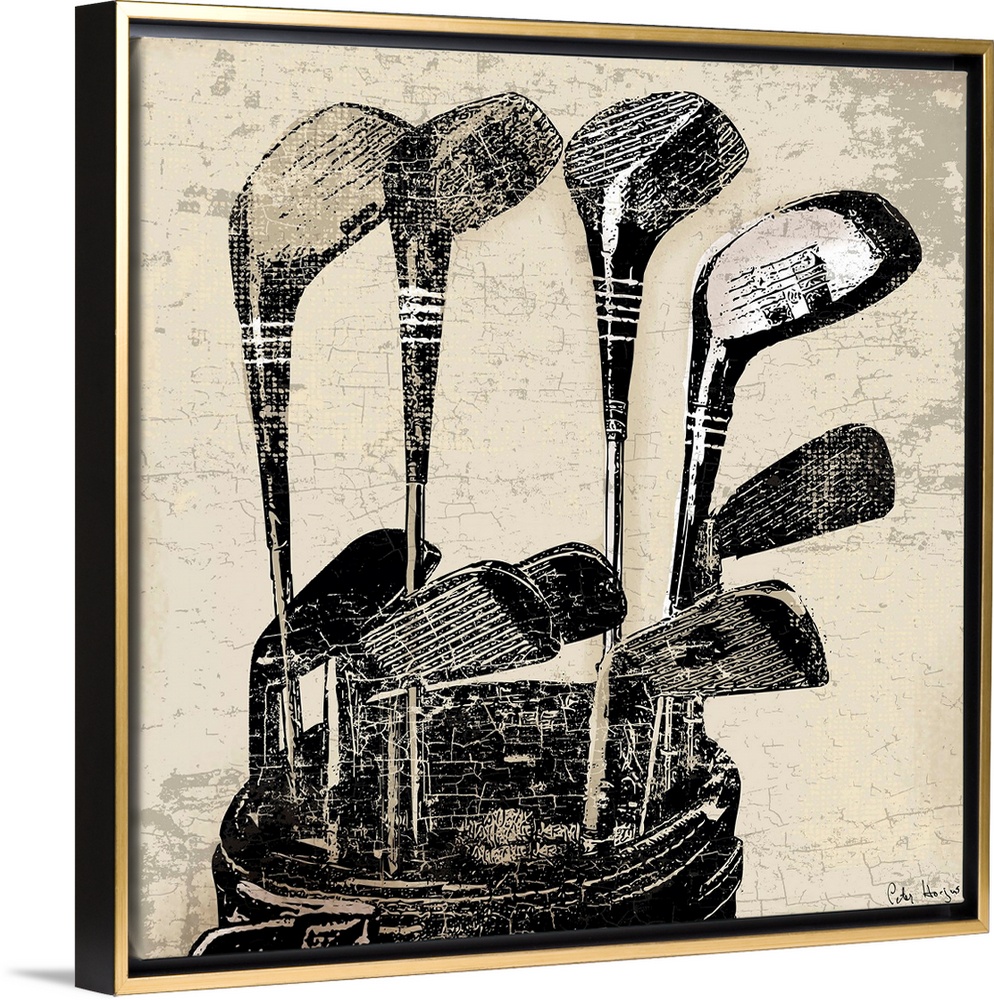 <p>Vintage style wall art of an old distressed golf clubs on tan and sepia background.</p>