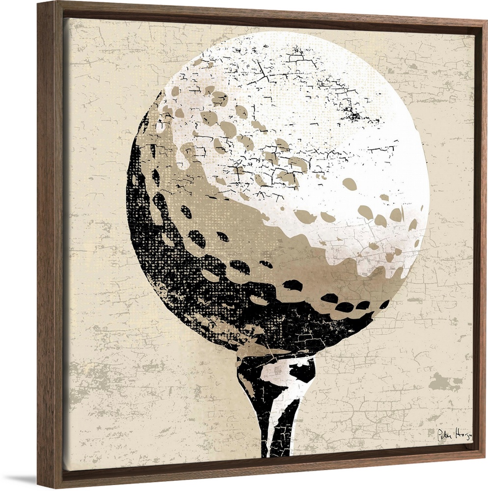 <p>Vintage style wall art of an old distressed golfball on tan and sepia background.</p>