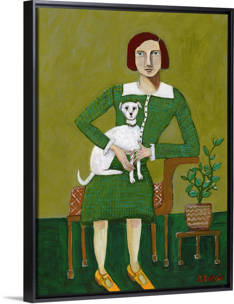 Art Sharyn Bursic Matcha Contemporary Art Figurative Green Wall Art Painting Figurative Wildlife Dog