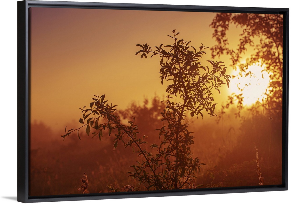 <p>Vintage Landscape With Tree Branches At A Misty Autumn Sunrise</p>