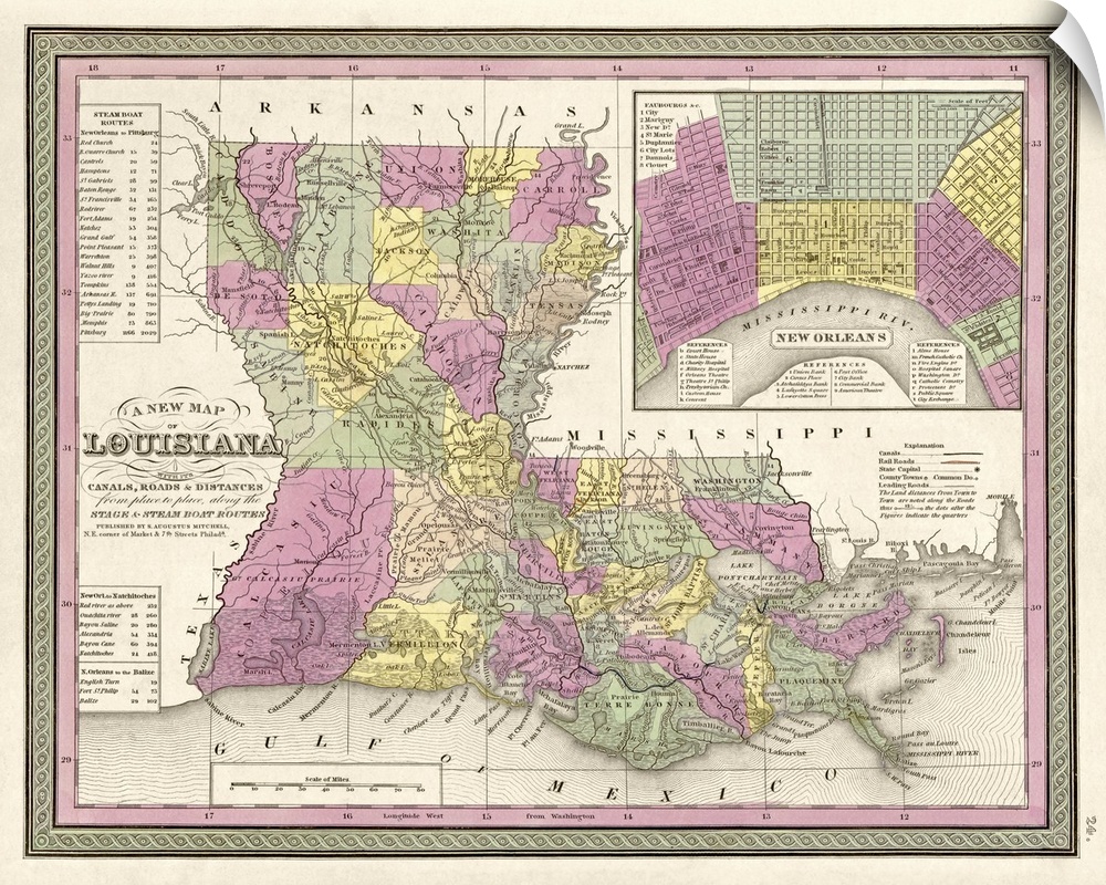 Art Drawing Maps Antique Maps Samuel Augustus Mitchell Louisiana