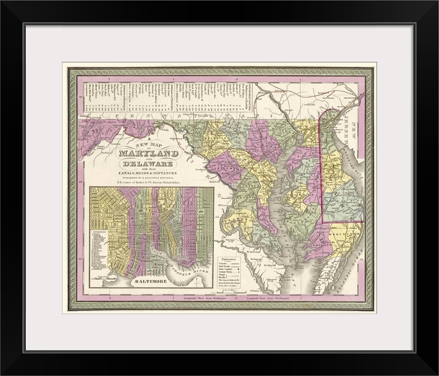 Art Drawing Maps Antique Maps Samuel Augustus Mitchell Maryland