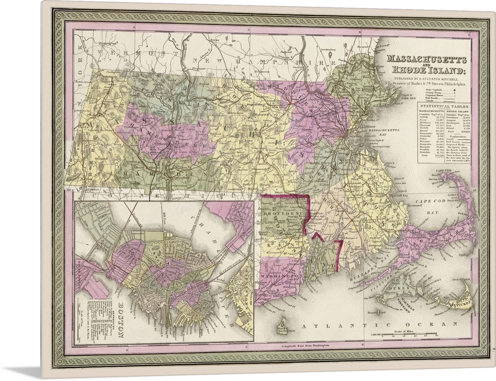 Art Drawing Maps Antique Maps Samuel Augustus Mitchell Massachusetts Rhode Island