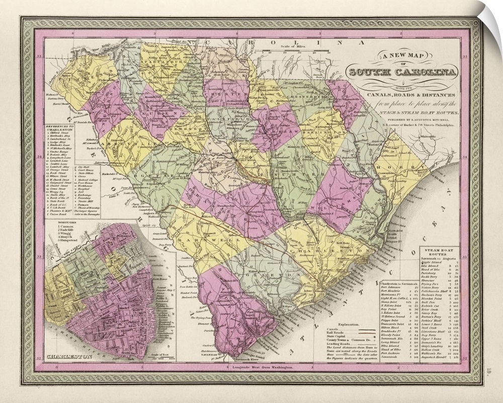 Art Drawing Maps Antique Maps Samuel Augustus Mitchell South Carolina