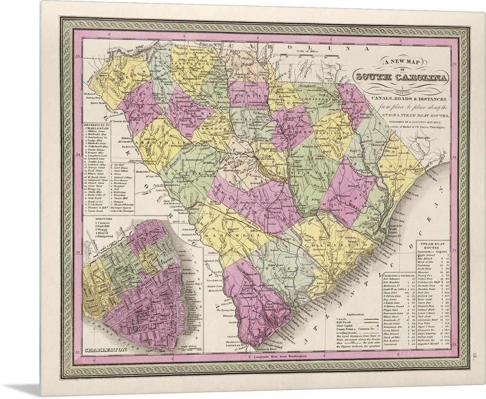 Art Drawing Maps Antique Maps Samuel Augustus Mitchell South Carolina