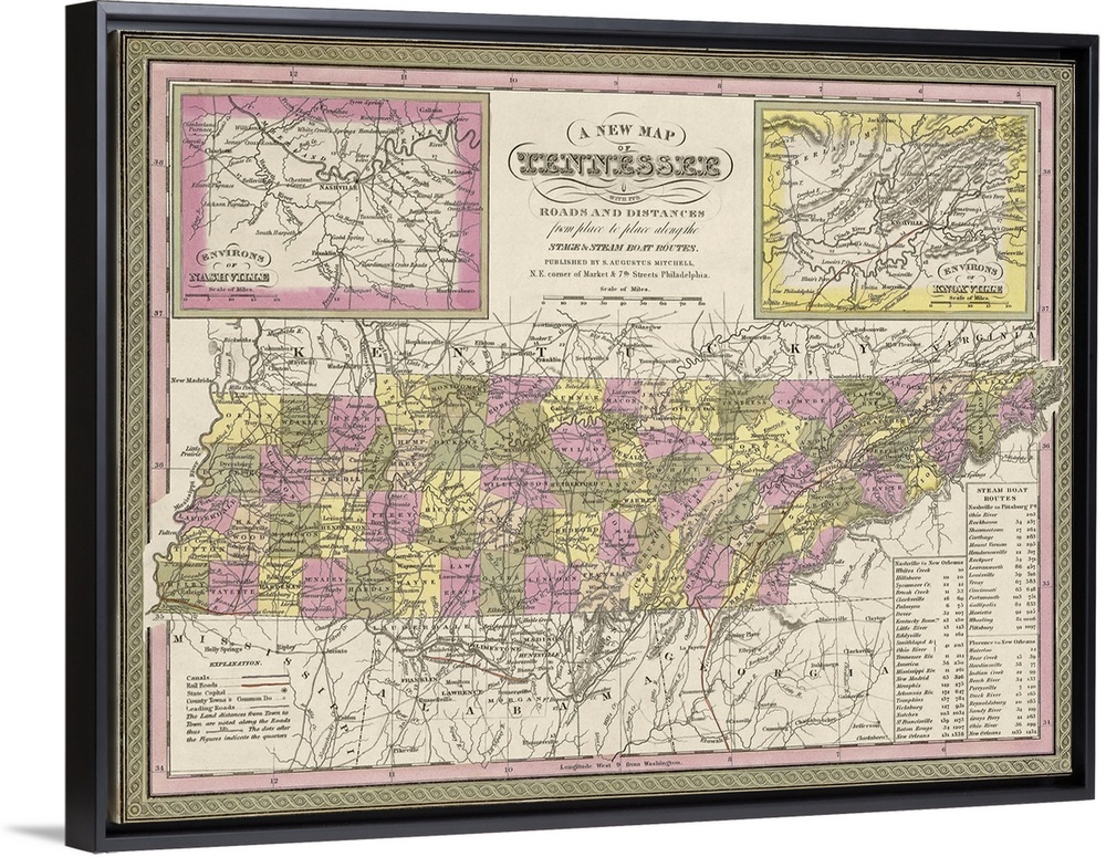 Art Drawing Maps Antique Maps Samuel Augustus Mitchell Tennessee Nashville
