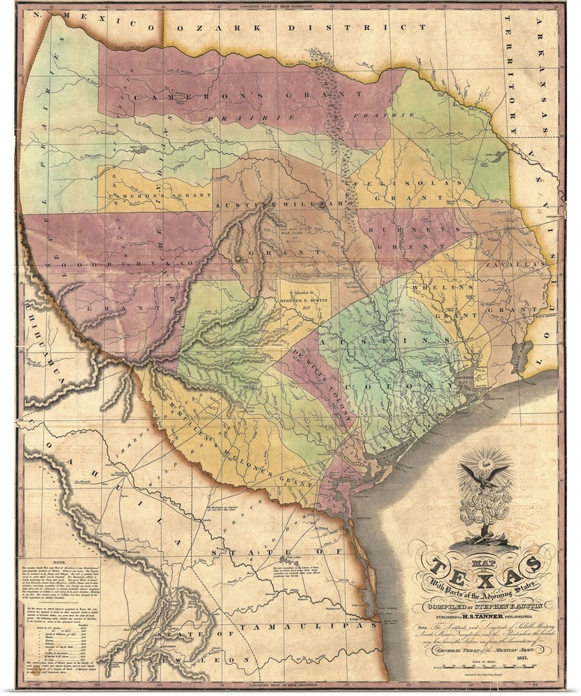 <p>This is a very old antique map of the Lone Star state in its very early history showing different regions and territories as well as rivers, land formations, and cities present at the time.</p>