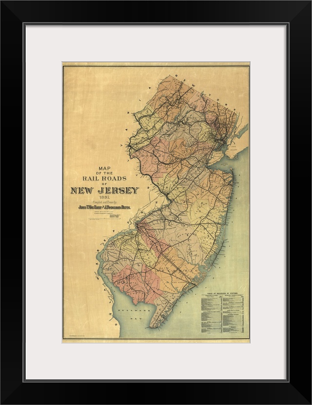 <p>Large vertical vintage map of the New Jersey Rail Roads in 1887. The background has a rough, parchment appearance.</p>