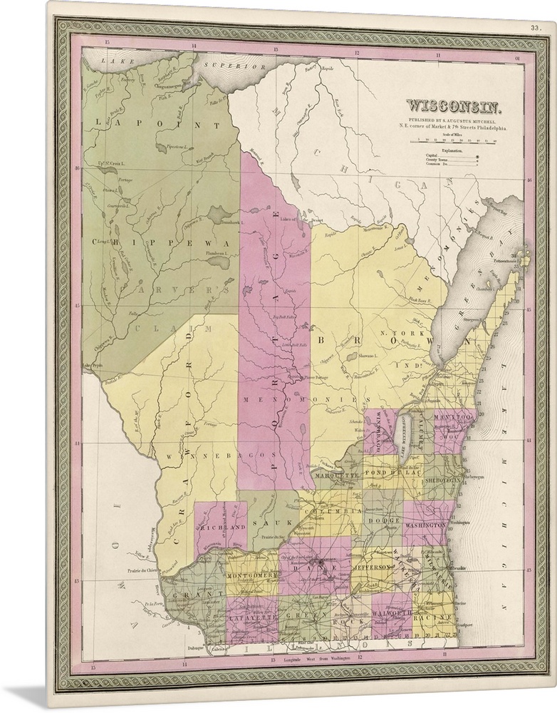 Art Drawing Maps Antique Maps Samuel Augustus Mitchell Wisconsin