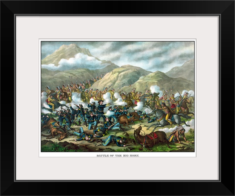 <p>Vintage military print featuring The Battle of Little Bighorn, also known as Custer's Last Stand. The poster is titled, Battle Of The Big Horn.</p>