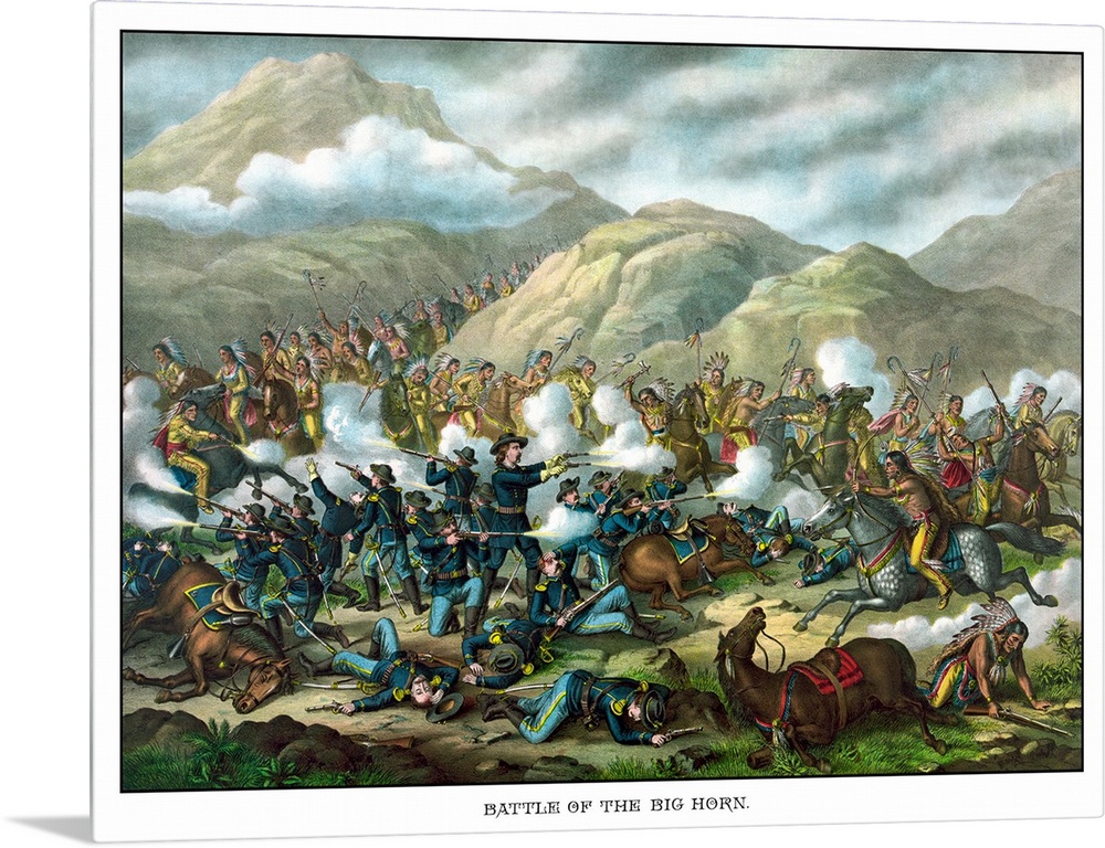 <p>Vintage military print featuring The Battle of Little Bighorn, also known as Custer's Last Stand. The poster is titled, Battle Of The Big Horn.</p>