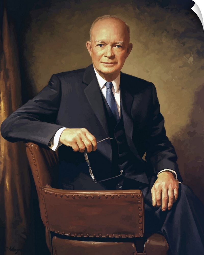 <p>Vintage painting of President Dwight D. Eisenhower seated in a chair.</p>