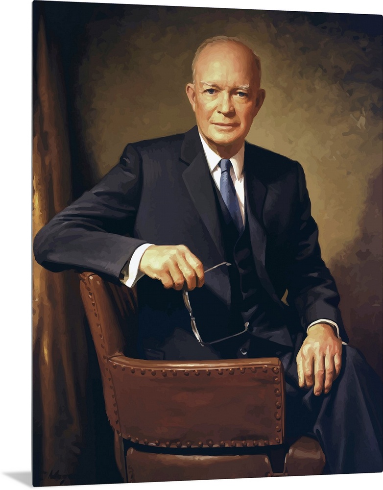 <p>Vintage painting of President Dwight D. Eisenhower seated in a chair.</p>
