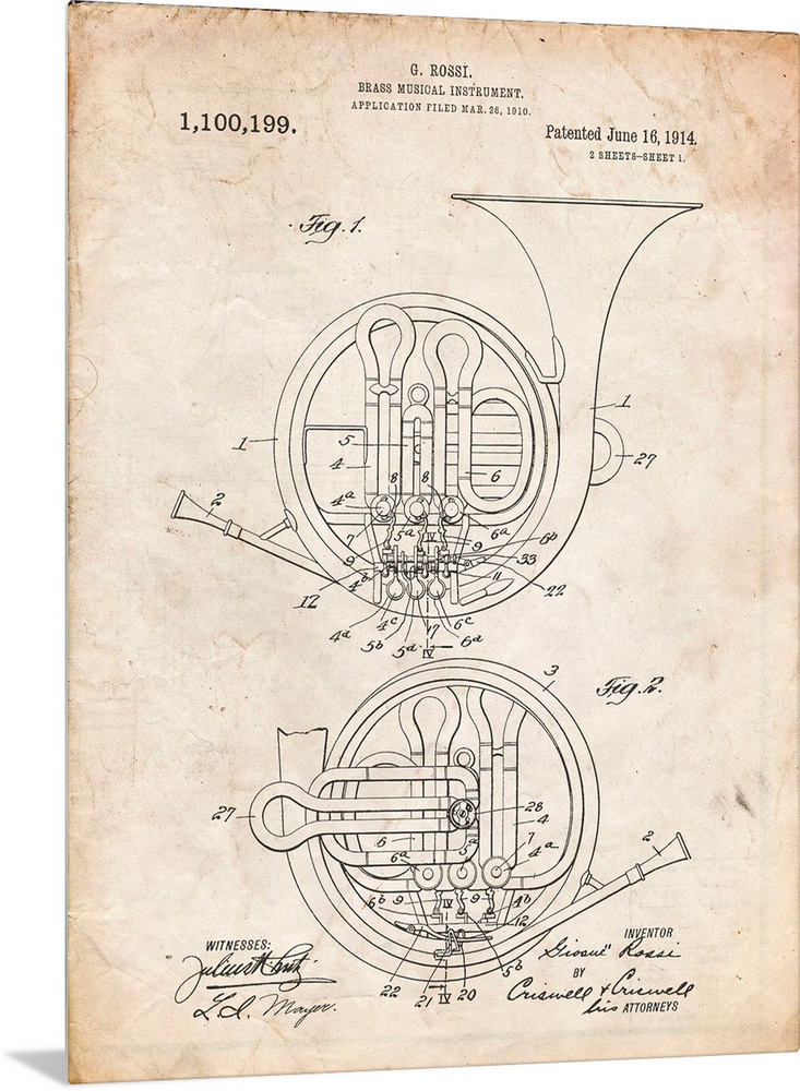 Art Blueprints Cole Borders Decorative Art Drawing Music, Movies and TV Music Instruments Brass