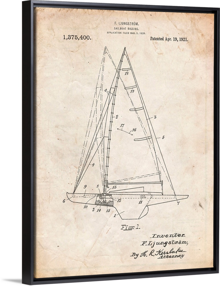 Art Blueprints Cole Borders Decorative Art Drawing Transportation Boat Sailboat