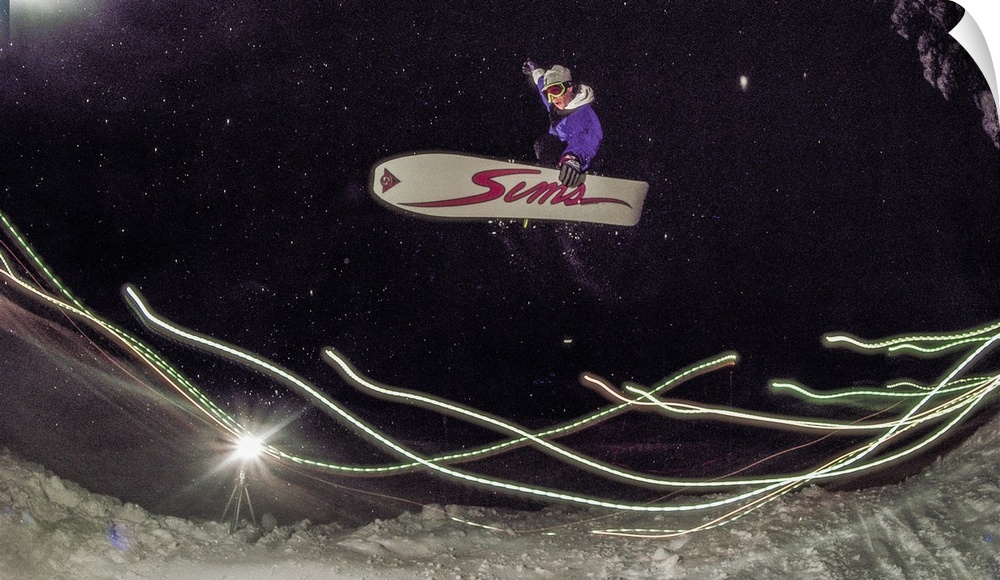 <p>Vintage photo of legendary snowboarder Chris roach riding boreal in 1989. Photo may have a film grain texture. Location: Boreal - Lake Tahoe, California.</p>