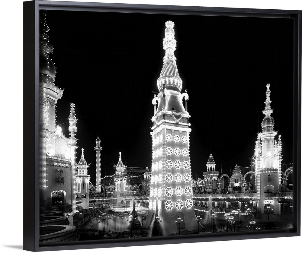 <p>Vintage print of Coney Island, an evening in Luna Park in 1905.</p>