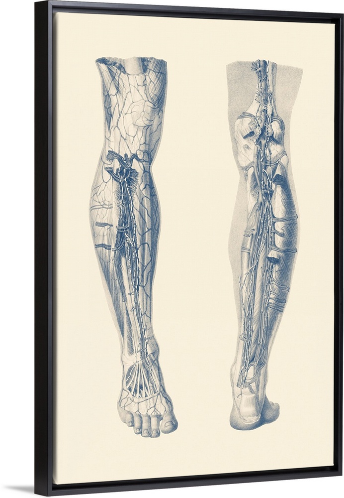 <p>Vintage print showing a dual view of the human muscular system of the right leg.</p>
