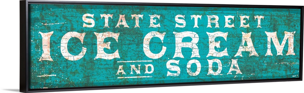 <p>Vintage rusty 1890's distressed trade sign wall art with typography reading State Street Ice Cream.</p>