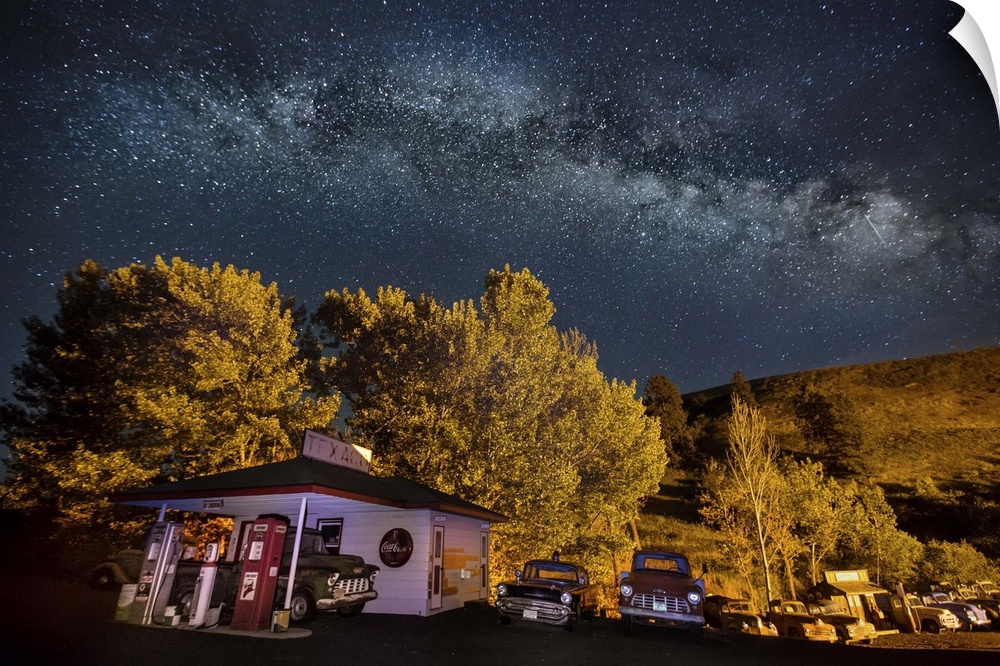 <p>Vintage Texaco gas station after dark in the Palouse, Washington</p>