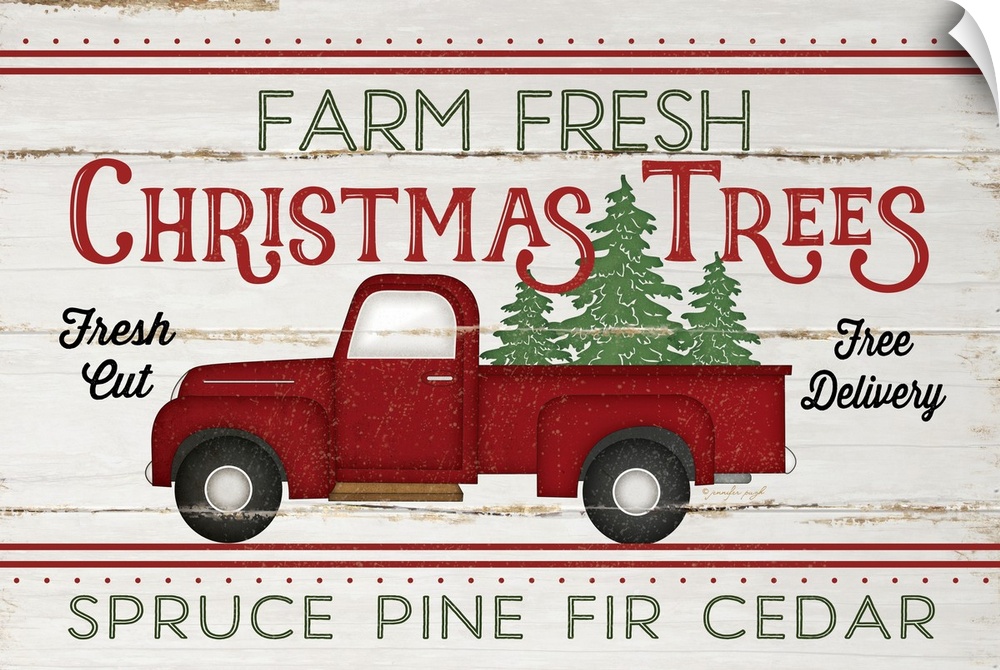 Art Farmhouse Christmas Holidays Christmas Painting Jennifer Pugh Transportation Truck Typography & Calligraphy Holiday Typography