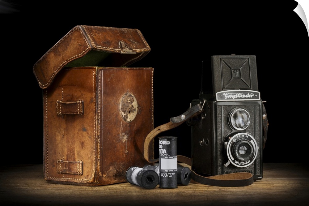 <p>Vintage Voigtlander Brilliant camera with leather case and roll films.</p>